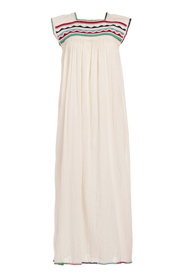 Description Sleeveless midi dress featuring hand embroidered details and cross stitching throughout. Hand made by artisans in Mexico Details Hand embroidery along neckline Unlined Composition: 100% cotton Country of origin: Mexico Sizing Model is 5'9" | 32.5" bust | 23.5"...