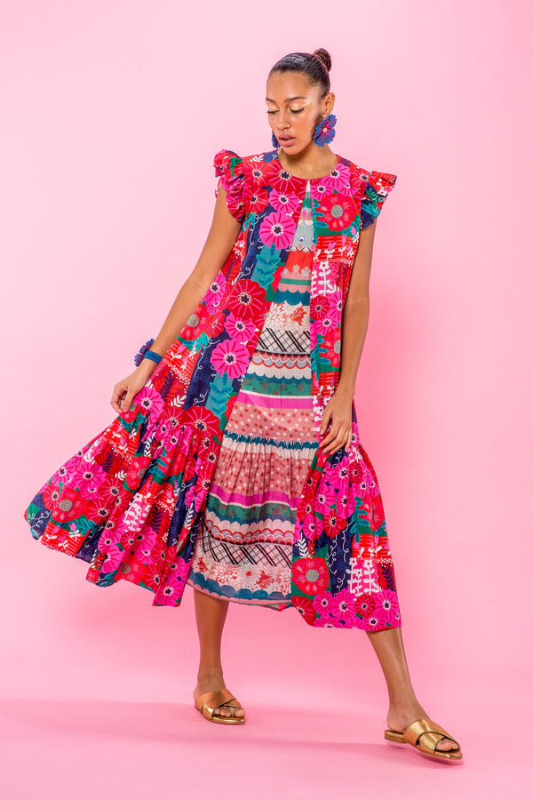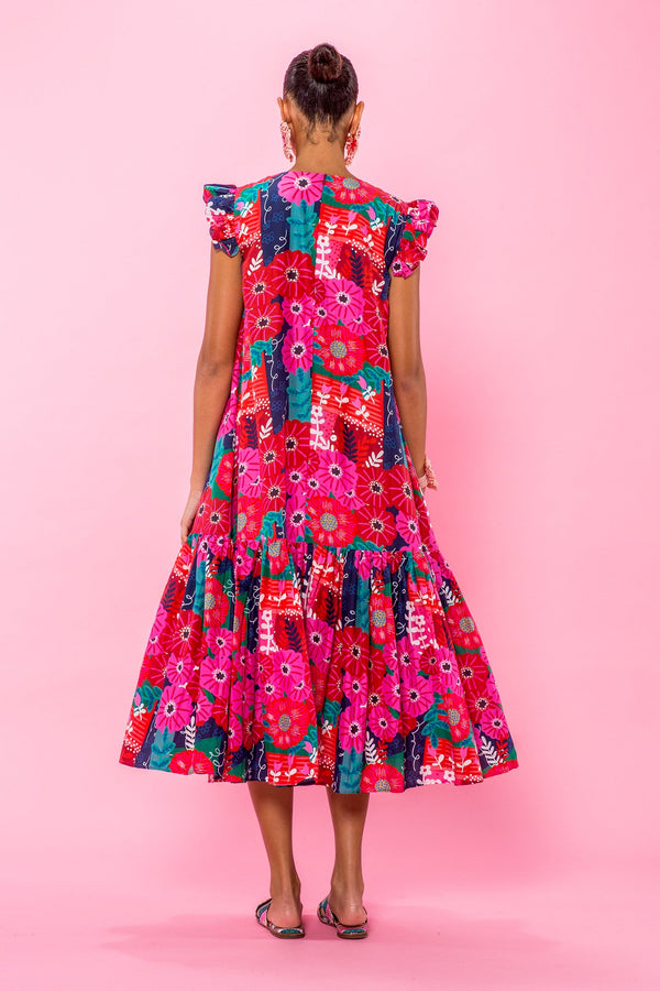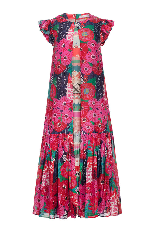 Description Midi length style dress printed in our Magic Garden cotton silk featuring a crew neckline, contrasting inverted pleat, flutter sleeves, and full skirt. Unlined. Sizing Model is 5'9" | 32.5" bust | 23.5" waist | 36" hips Model wears...