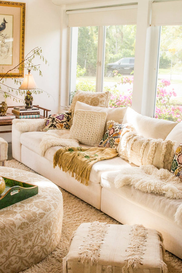 Please note the following: This item is MADE TO ORDER. Lead time of 4-6 weeks. Description: Off white. Hand knittedĀ in Mexico by artisans. 17" x 17" Removable cover. Insert included
