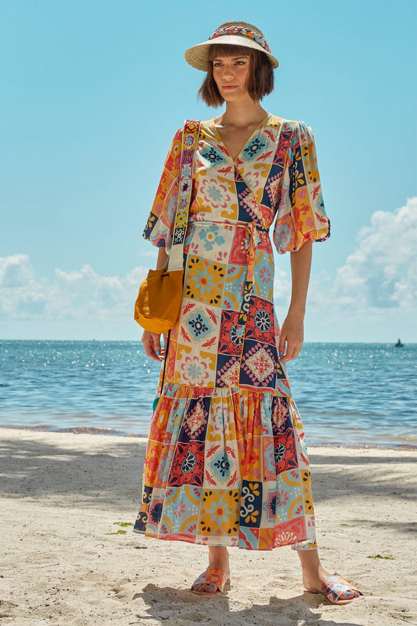Description Maxi robe featuring puffed sleeves and a self-tie waistline. Can be worn as a robe or a dress. Details Unlined Composition: 95% cotton 5% viscose Country of origin: India Sizing Model is 5'6" | 30" bust | 23.5" waist...