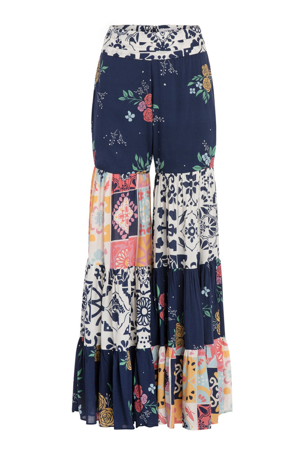 EXPECTED TO SHIP DECEMBER 10th Description High waisted printed pants featuring a patchwork print and tiered flowing silhouette Details Unlined Back zipper Composition: 95% cotton 5% viscose Country of origin: India Sizing Model is 5'9" | 32.5" bust | 23.5"...