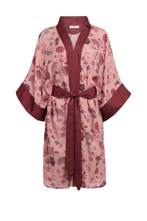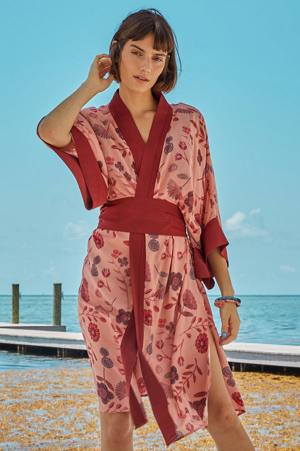 Description Floral kimono featuring wide three quarter sleeves and an oversized bodice. Details Self-tie belt Unlined Composition: 95% cotton 5% viscose Country of origin: India Sizing Model is 5'6" | 30" bust | 23.5" waist | 34" hips Model wears...