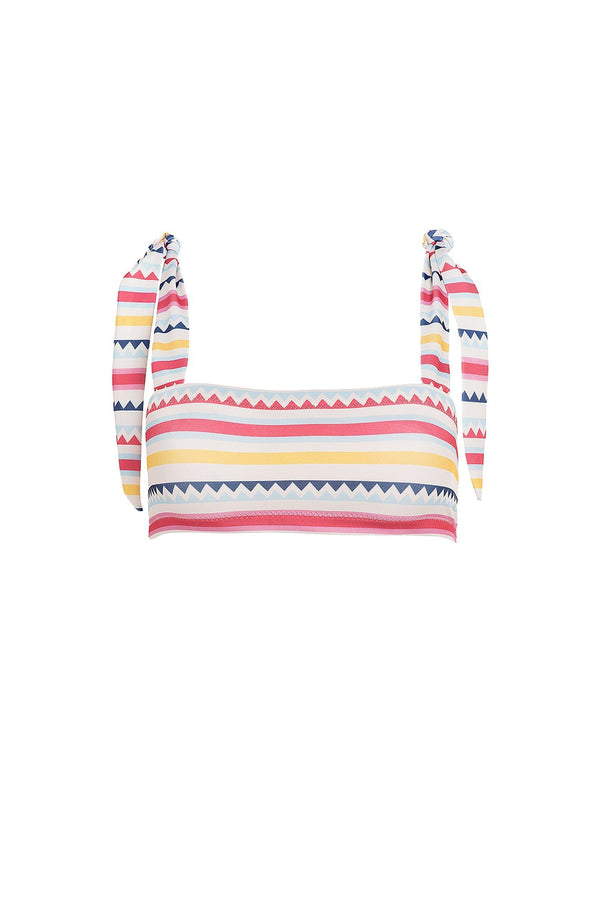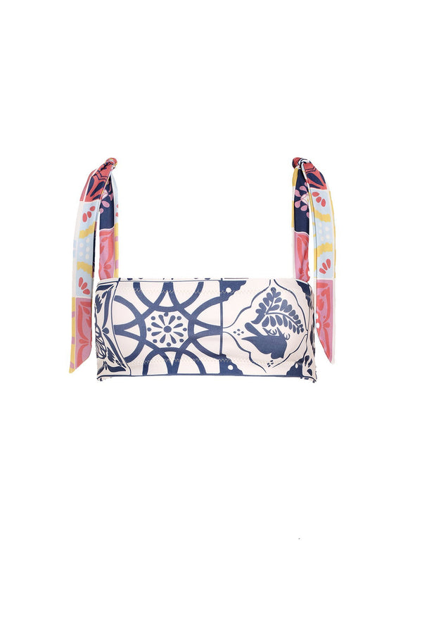 Description Bikini top featuring tie straps. Made with ECOCEAN® - Recycled polyester from PET bottles, industrial polyester wastes and even clothing. The printing process is environmentally friendly, being a dry print (without the use of water) and ecological and certified...