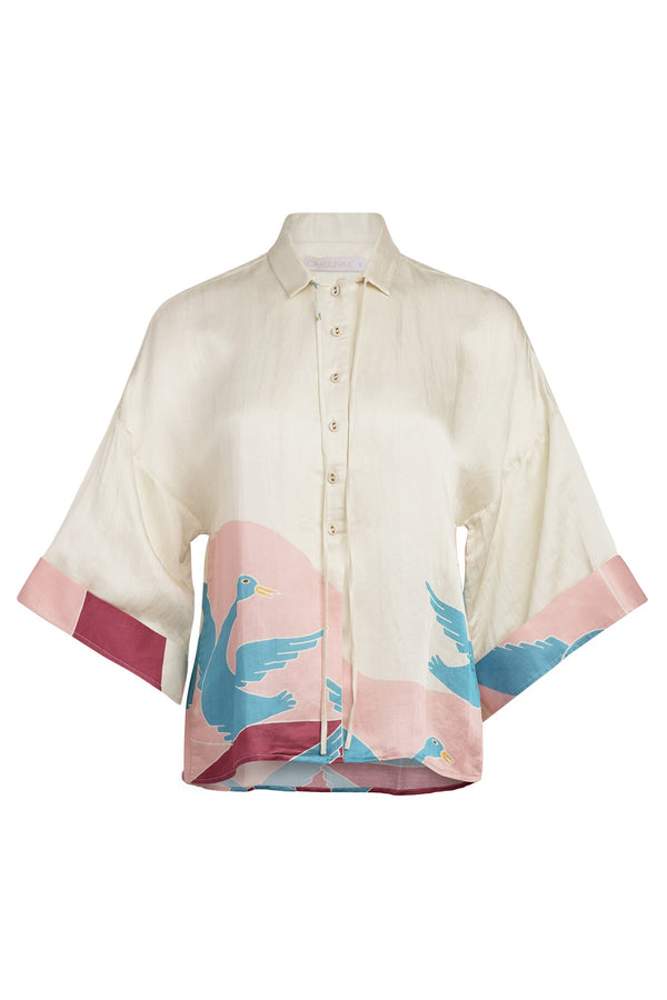 Description Cropped blouse featuring a classic structured collar and button up closure. Details Unlined Flowing silhouette Composition: 60% satin viscose 40% linen Country of origin: India Sizing Model is 5'9" | 32.5" bust | 23.5" waist | 36" hips Model...