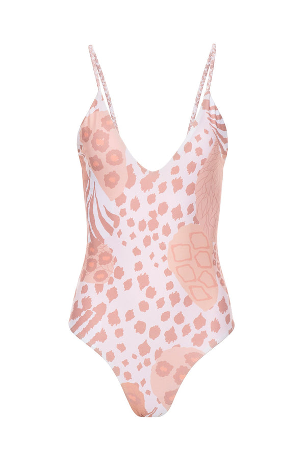 Description Reversible spaghetti strap one piece swimsuit featuring a leopard print In an effort to continue with our sustainability mission this garment was designed with 100% recycled nylon. Details Reversible Lined Composition: 78% ECONYL® regenerated nylon, 22% lycra spandex Country...