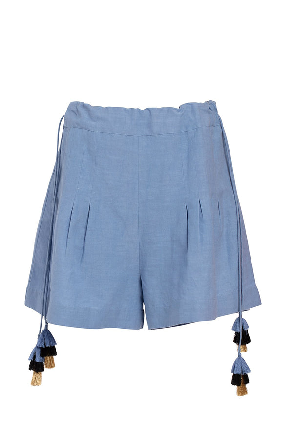 Description High waisted shorts featuring a side tie waistband with tassels and small pleats throughout. Details Unlined Composition: 70% cotton 30% linen Country of origin: India Sizing Model is 5'6" | 30" bust | 23.5" waist | 34" hips Model...