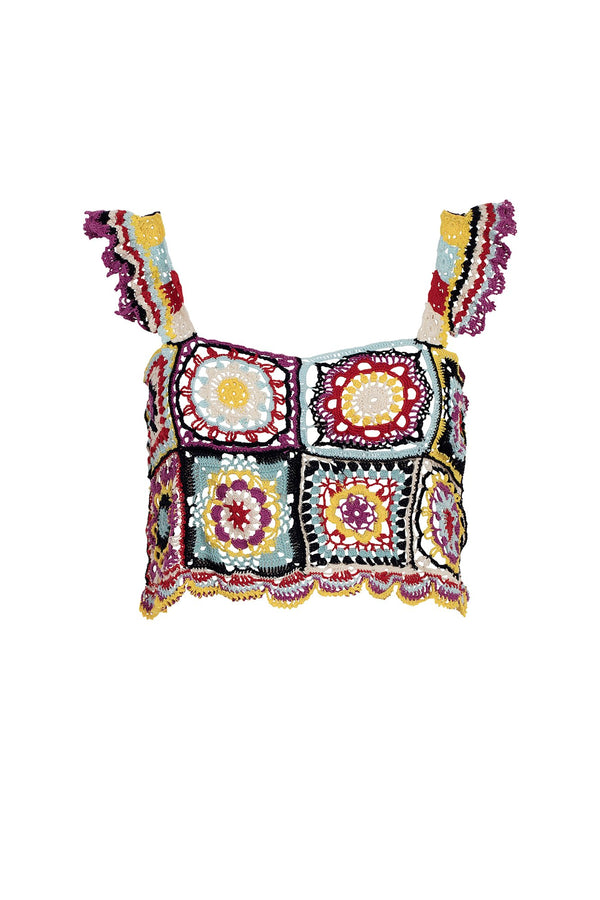 Description Cropped crochet top featuring a patchwork design and ruffled sleeves. Handmade by artisans in Mexico Details Unlined Composition: 100% cotton Country of origin: Mexico Sizing Model is 5'9" | 32.5" bust | 23.5" waist | 36" hips Model wears...