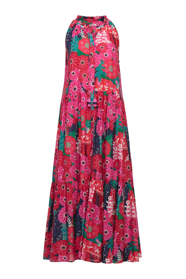 Description Sleeveless maxi kaftan printed in our Magic Garden cotton silk, featuring a flowing silhouette, front button closure, tiered skirt, and straight hem. Sizing Model is 5'9" | 32.5" bust | 23.5" waist | 36" hips Model wears size small...