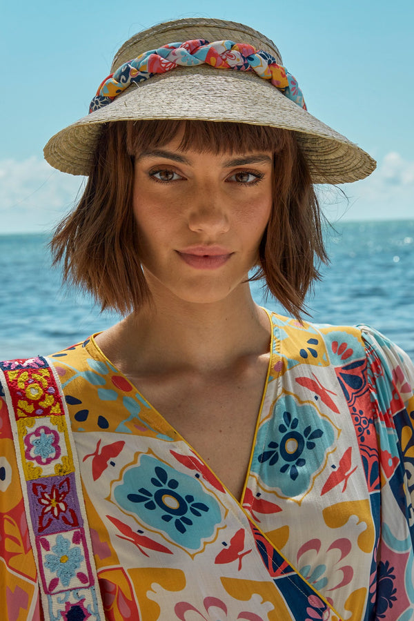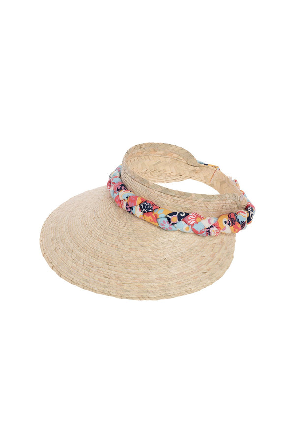 Description Visor made of natural straw featuring a braided fabric panel Made by artisans in Mexico Details Composition: 100% natural straw Country of origin: Mexico Care Spot clean