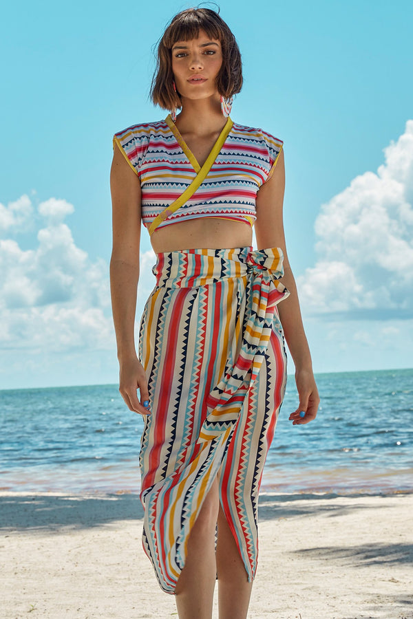 Description Midi skirt featuring a wrap around silhouette Details Side tie Unlined Composition: 100% satin viscose Country of origin: India Sizing Model is 5'6" | 30" bust | 23.5" waist | 34" hips Model wears size small Care Delicate machine...